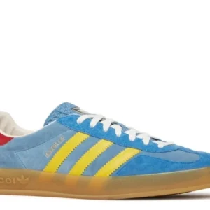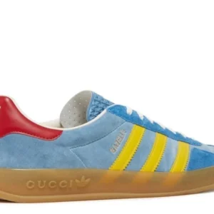 The Adidas Gazelle x Gucci Light Blue Suede is a luxurious fusion of sports and fashion. Featuring a light blue suede upper, iconic Gucci branding, and Adidas’ timeless Gazelle silhouette, this collaboration brings a chic and contemporary flair to a classic design, offering a standout piece for any wardrobe.