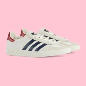 Elevate your footwear game with the Adidas x Gucci Gazelle White Sneakers, a collaboration that merges Adidas’ classic streetwear style with Gucci’s luxury craftsmanship. Featuring sleek white leather, signature branding, and a timeless silhouette, these sneakers offer the perfect balance of comfort and sophistication. Whether for casual outings or upscale events, they add an unmistakable touch of elegance to any look.