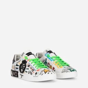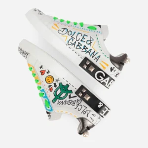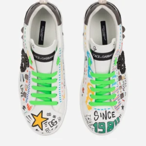 D&G Calfskin Portofino Sneakers With Embroidery And Studs