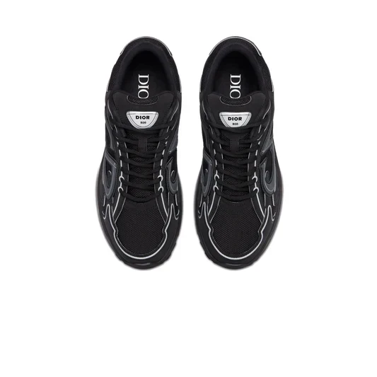 The B30 sneaker has become a new House essential distinguished by its modern and sporty silhouette. Crafted in black mesh and technical fabric, it is enhanced by a reflective tonal 'CD30' signature with a graphic aesthetic. The B30 also features silver-tone 'DIOR B30' and 'CD30' signatures on the tongue and the back of the sneaker. A sculpted and ultra-lightweight rubber outsole spotlights various hallmark details, while an elastic interior provides optimal comfort. The B30 sneaker will complete any casual outfit.