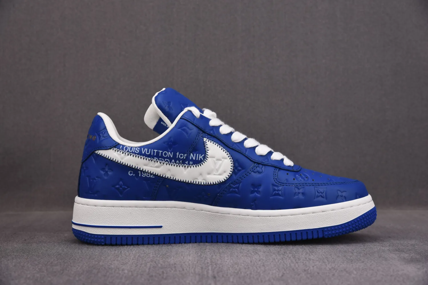 In total, Virgil Abloh designed 47 pairs of the Nike “Air Force 1” for the Louis Vuitton show in collaboration with Nike. To distinguish them from the original Nike “Air Force 1″, the sneakers were made with materials employed in Abloh’s Louis Vuitton men’s collections, and were styled with his signature quotation marks, echoing the written graphics Abloh used to adorn the shoes. The individual styles designed for the show were made by Louis Vuitton in its shoe atelier in Fiesso d’Artico, Venice. In January 2022, the first installment of the Louis Vuitton x Nike “Air Force 1” by Virgil Abloh came to market through Sotheby’s exclusively at auction.