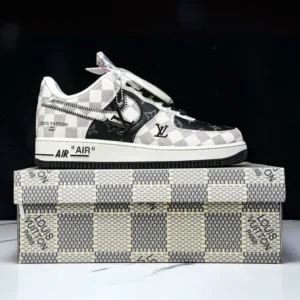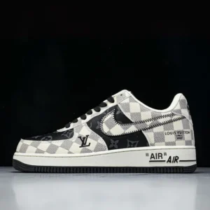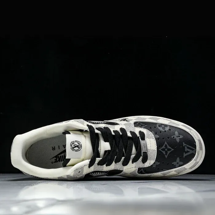 Bold, loud, and made to stand out — Royal Black LV AF1 combines luxury textures with graphic impact. Featuring cream-and-black LV pattern with layered black monogram overlays, and a stitched checkerboard Swoosh, this design takes heritage patterns and flips them into statement streetwear.
