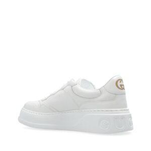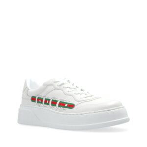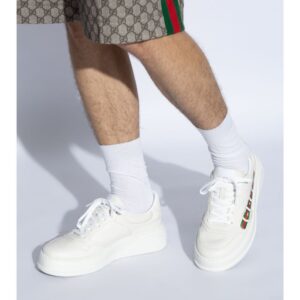 This sneaker's chunky silhouette gives it a playful, retro feel. Gucci's collections continue to look to other eras. This pair of sneakers is crafted in white Demetra, a material created with the same processes used for tanning, the new material offers pliable and resilient performance with a supple finish. A Gucci Web print completes the style.