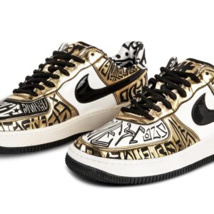 In the show, Salvator “Turtle” Asante spends an entire episode devoted to hunting down the Fukijama Air Force 1. Though Fukijama is a fictional artist, the sneakers pop culture history has led it to be a much sought after item for collectors. The striking Gold Fukijama Air Force 1 features a laser-etched design on metallic gold leather panels and black leather Nike Swooshes. The tongue and heel feature special UNDFTD graphics.