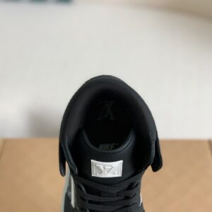 Unleash bold luxury with the LV x Air Jordan 1 in Triple Black, a striking mix of iconic street style and designer finesse. Featuring jet-black leather overlays, a translucent Louis Vuitton monogram base, and a crisp reversed white Swoosh, this pair commands attention with every step. The black-on-black detailing, paired with a slightly frosted off-white midsole, delivers a clean, powerful aesthetic that works seamlessly from day to night. Built for those who lead with confidence and style.
