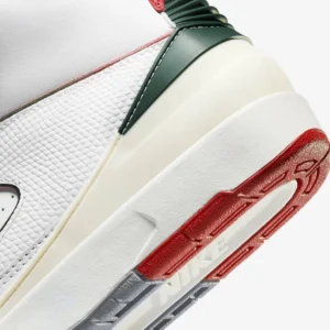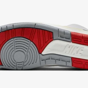 The Air Jordan 2 Retro ‘Chicago Home’ emerges in one of the silhouette’s OG colorways. Featuring a white leather upper with the signature faux lizard skin overlay near the ankle, perforations along the forefoot are included for breathability. Black and Varsity Red on the detailing, with the latter color also on the heel and tongue branding, complete the Bulls look, while grey emerges on the outsole. Air in the midsole provides cushioning.