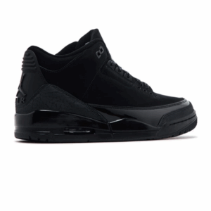 The 2025 version of the Air Jordan 3 Retro ‘Black Cat’ was named after one of Michael Jordan’s pre-NBA nicknames. Sporting black nubuck on the upper, these shoes have a matching black patent leather mudguard and charcoal elephant-print forefoot and heel overlays. The Jumpman logo graces the tongue and back tab, while a foam midsole contains a visible Air-sole heel unit for a resilient feel.