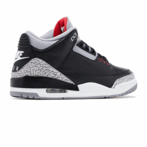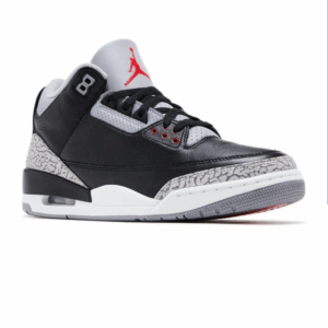 The 2024 version of the Air Jordan 3 Retro OG ‘Black Cement’ stays true to the 1988 original, rolling out a black tumbled leather upper with grey elephant print forefoot and heel overlays. An embroidered red Jumpman stars on the tongue, while a raised Nike Air logo adorns the heel. A white foam midsole equips Air-sole cushioning, adding a touch of black along the heel, anchored by a grey rubber outsole.