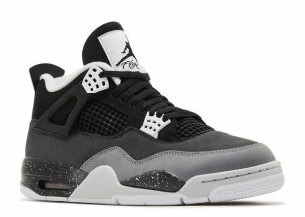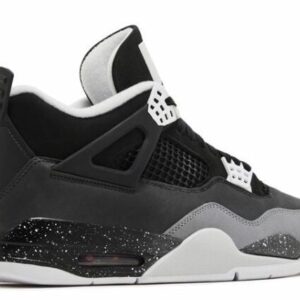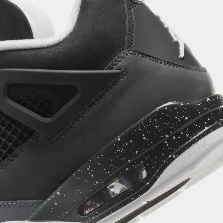 The 2024 edition of the Air Jordan 4 Retro ‘Fear’ brings back the 2013 colorway, using a nubuck upper accented with a grey mudguard and toe wrap. White molded eyelets match the Jumpman logos on the tongue tag and heel. White speckles decorate the a black foam midsole, which packs an exposed Air-Sole heel unit.