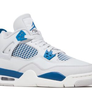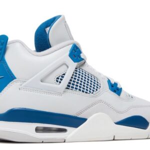 This 2024 reissue of the Air Jordan 4 Retro GS ‘Military Blue’ rolls out an off-white leather upper coupled with support wings and signature quarter panel netting. The molded eyelets, tongue tag, and back tab have blue accents and signature branding. The lightweight midsole exposes and Air-sole cushioning unit in the heel to round out the look.