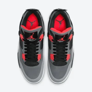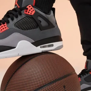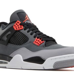 Bringing back color blocking similar to the 2013 release of the ‘Green Glow’ AJ4 is the Air Jordan 4 Retro ‘Infrared.’ The upper is made from smooth nubuck in a charcoal finish. A lighter shade of grey is on the forefoot overlay with black accents on the quarter panel netting, structural wings, and Jumpman-branded heel tab. The titular hue lights up the woven tongue tag and molded eyelets. It’s built on a polyurethane midsole with visible Air-sole cushioning in the heel.