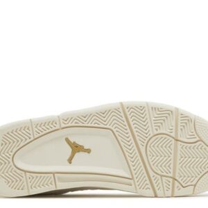 The Air Jordan 4 Retro ‘Metallic Gold’ has a smooth leather upper with a subtle off-white finish and metallic gold eyelets for a regal look. These shoes have a breathable quarter panel netting and a debossed Jumpman logo on the tongue. The prominent molded heel tab backs a plush collar. Underneath, a soft midsole reveals an Air-sole heel unit for soft cushioning. The classic herringbone rubber outsole provides traction and optimal grip.