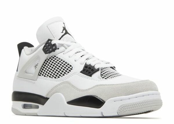 Featuring the same color blocking and materials used on the OG ‘Military Blue’ colorway from 1989 is the Air Jordan 4 Retro ‘Military Black.’ The upper is made with smooth white leather with a forefoot overlay in grey suede. Black accents are on the TPU eyelets, molded heel tab, and the Jumpman logo on the woven tongue tag. It’s built on a two-tone polyurethane midsole with a visible Air-sole unit under the heel.