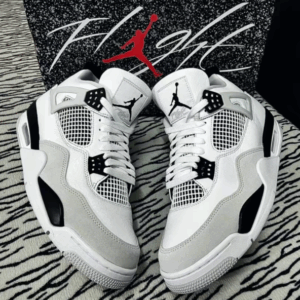 Inspired by the widely recognized “Military Blue” Air Jordan 4 that first released in 1989, this modern iteration swaps the blue for black accents. Similar to its inspiration, the shoe also features a predominantly white leather upper complemented by light grey accents on the suede mudguard and lacing cage. Elsewhere, Jumpman branding takes up the usual spots on the tongue and heel logos. Rounding it all out is a crisp white Nike Air midsole for all-day comfort.