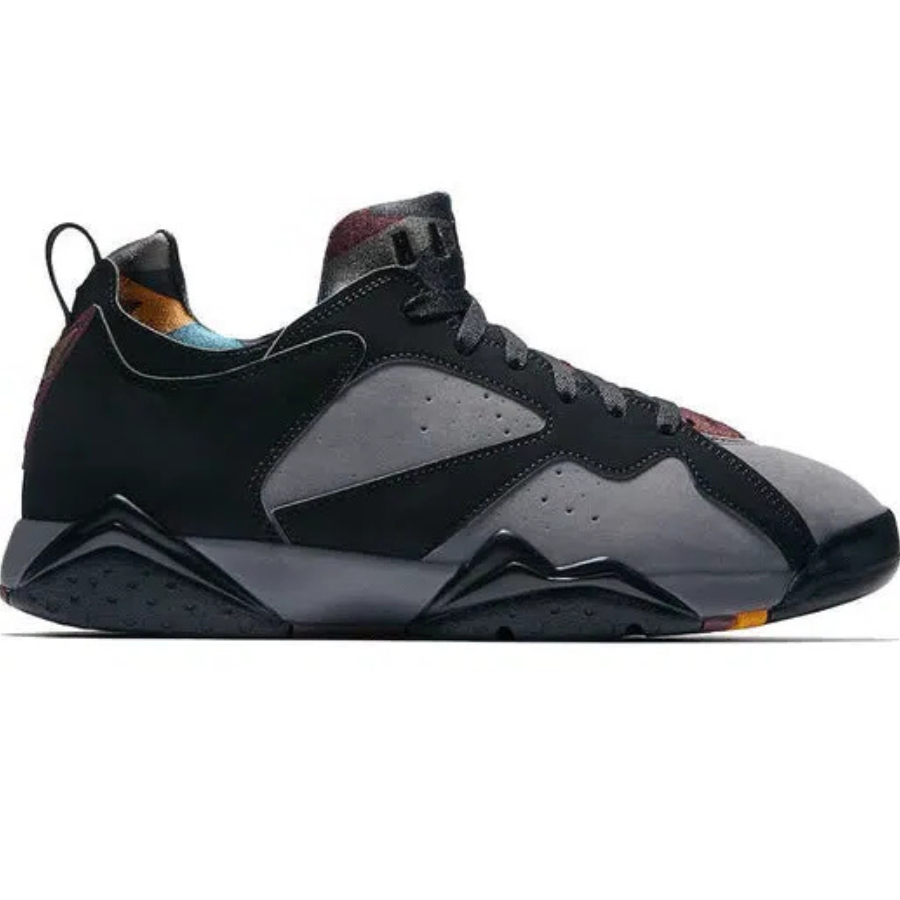 In honor of the original colorway of the Bordeaux Air Jordan 7s, Nike released a low-top version in this Fall 2018 reboot. The Air Jordan 7 Retro Low NRG ‘Bordeaux’ features a Light Graphite nubuck upper with black nubuck overlays and perforations along the midfoot for ventilation. Modern touches include the multicolor geometric patterns on the inner neoprene bootie and outsole, the ‘23’ emblem at the heel, Bordeaux accents on the throat, and jeweled black accents on the midsole.