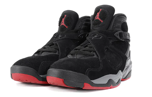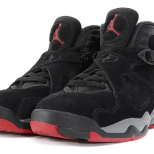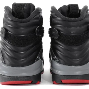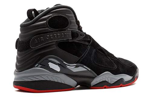 The Bred ‘ Air Jordan 8 Retro features a black leather and a Wolf Grey midsole nubuck upper. The ‘Bred’ released in September 2017 and also features Gym Red accents on the tongue, insole, and outsole.