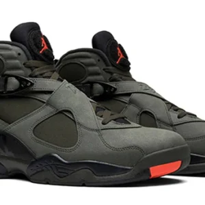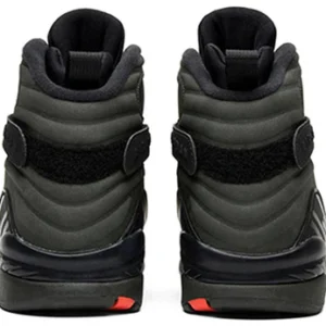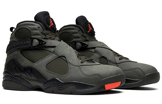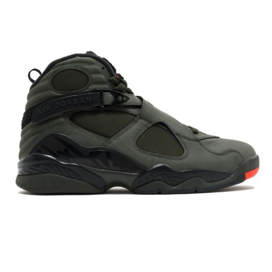 Over the years, Nike has applied military-inspired designs to a variety of silhouettes and the Air Jordan 8 got the ‘Take Flight’ colorway treatment in 2017. Also called ‘Sequoia’ (for the Sequoia-green base color) or ‘UNDFTD’ (because it resembles the well-known ‘ UNDFTD x Air Jordan 4 ‘), the colorway ‘Take Flight’ was influenced by the look of fighter jets and classic MA-1 flight jacket.