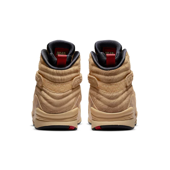Born in Japan and raised in the United States, Rui Hachimura is always looking to showcase all sides of his international heritage. This Air Jordan 8 Retro SE ‘Black Samurai’ features a tonal neutral tan, utilizing a textured twine-colored suede inspired by Japanese textile craft. The classic AJ8 details remain, including the cross-strap design and chenille tongue patch, updated with Rui’s personal “H” logo. Japanese characters on the inside of the tongue and sockliner continue Rui’s basketball and Air Jordan journey.