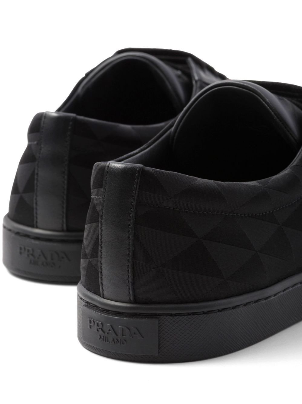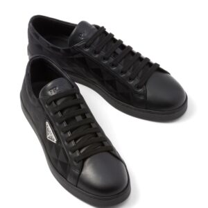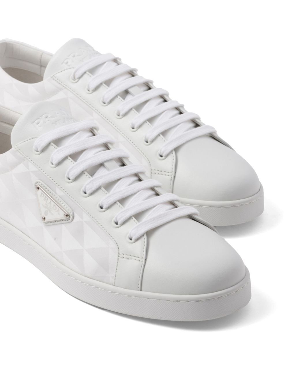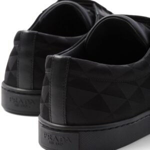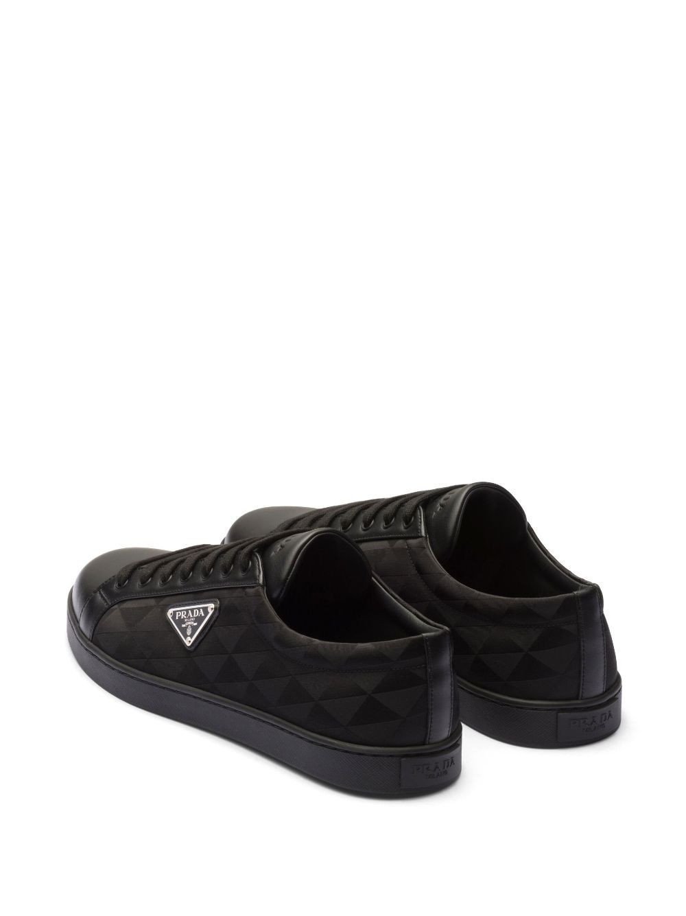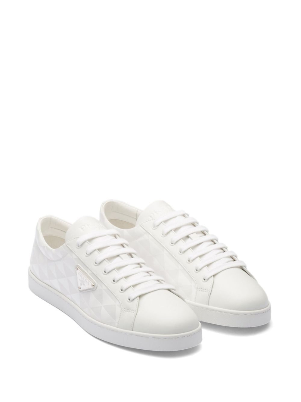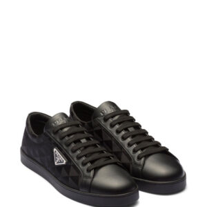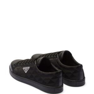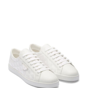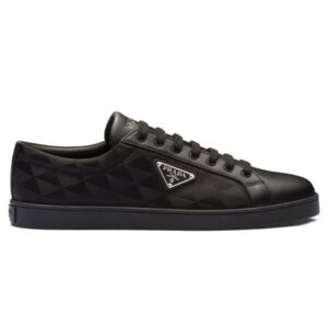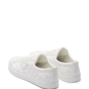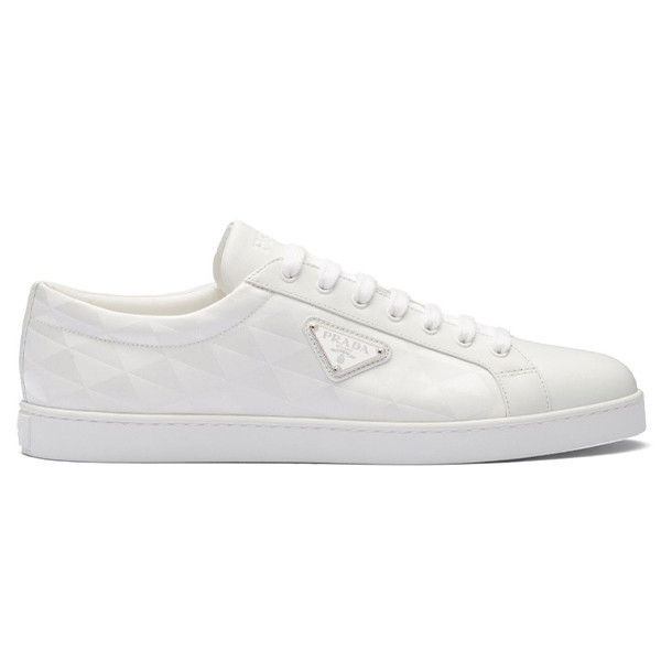 Prada's triangular logo plaque is an iconic motif for the brand, boasted at the side of these sleek low-top sneakers. The instantly recognisable logo appears here as an enamel plaque and geometric pattern.
