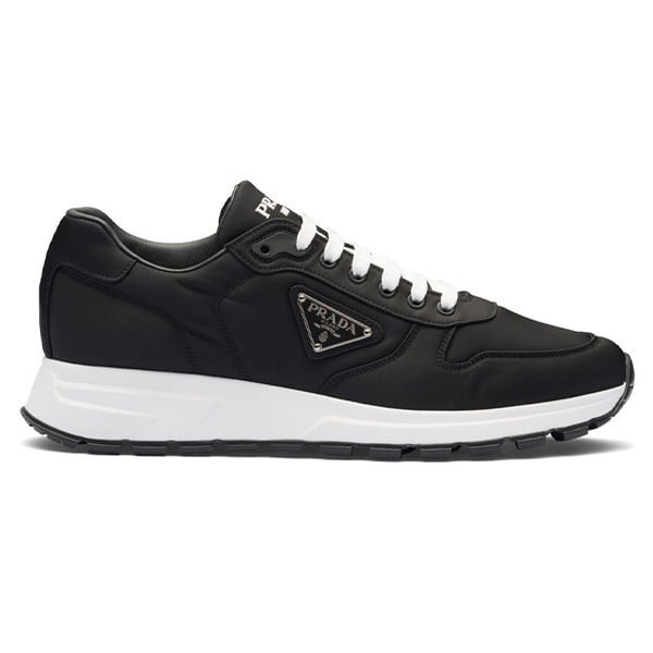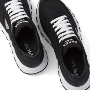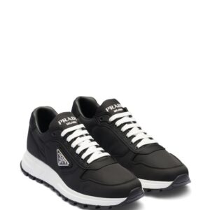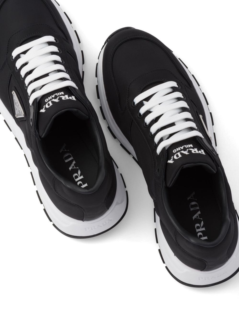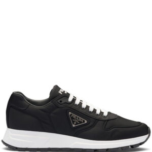 Made from signature recycled nylon, these PRADA sneakers are decorated with a side logo plaque in a tonal design. The grey-hued pair is set on a chunky rubber sole and fastened with a front lace-up.