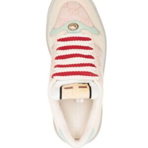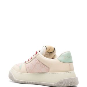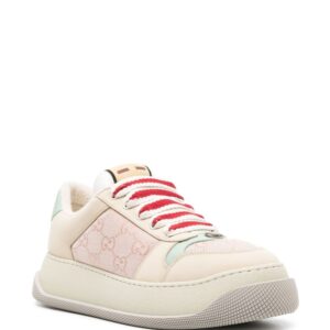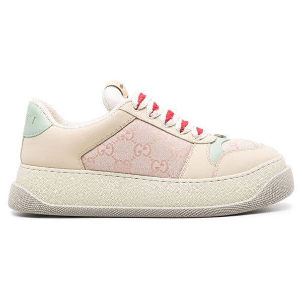 Originally created in the '30s, the iconic GG motif pays homage to founder Guccio Gucci and is now a hallmark within the house's collections. It’s spotlighted on the pink canvas panel of these chunky Screener sneakers and framed with pastel accents.